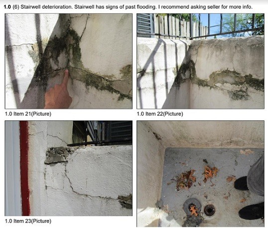 Stairwell deterioration. Stairwell has signs of past flooding. I recommend asking seller for more info.